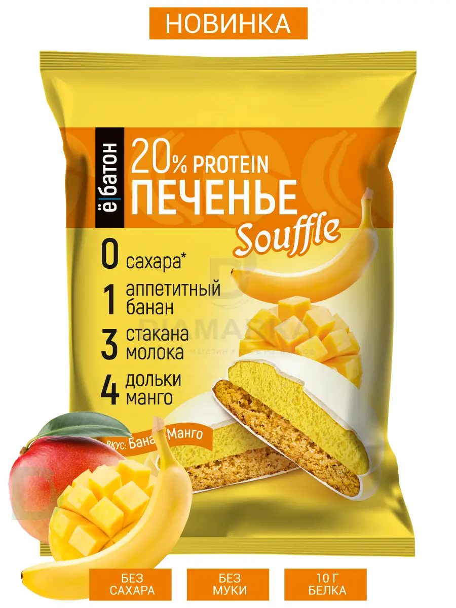 Печенье Ё/батон протеиновое суфле Манго-банан 50гр. Печенье Ё/батон протеиновое суфле Манго-банан 50гр.