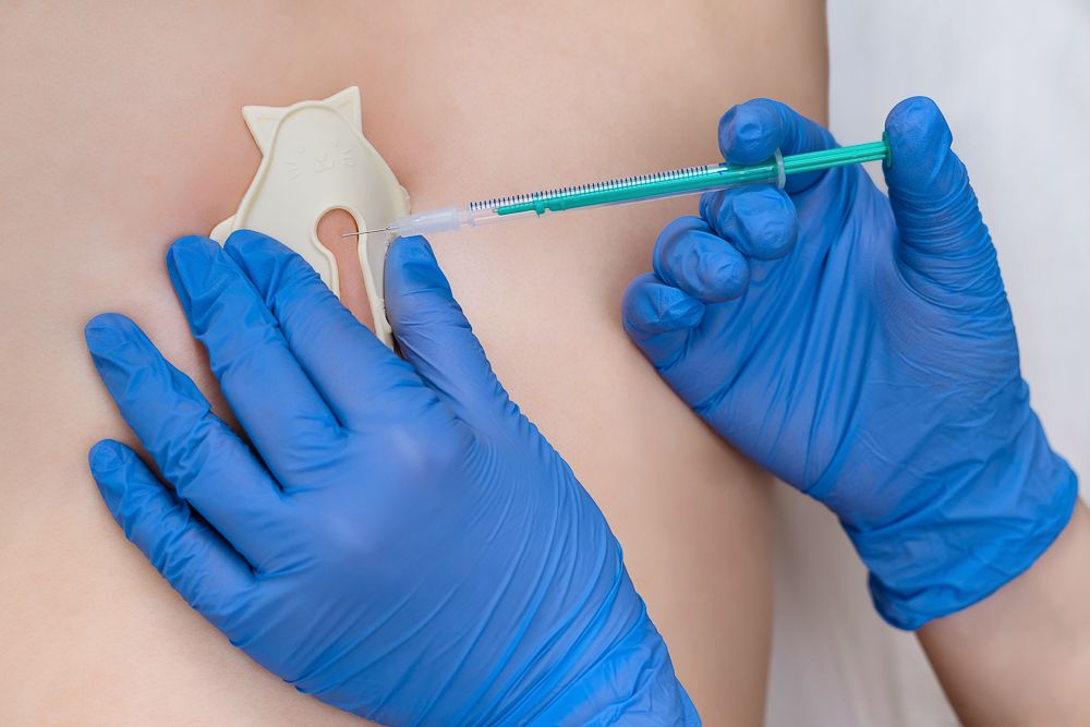 - натяжение кожи при формировании складки способствует более быстрому и легкому введению иглы