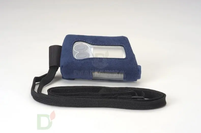 Чехол замшевый для помпы Акку-Чек «Алькантара» черного или синего цвета предназначен для ношения инсулиновой помпы Акку-Чек Спирит Комбо на груди. У чехла есть два прозрачных окошка для кнопок управления помпой и для просмотра объема оставшегося инсулина. Чехол Алькантара также имеет крепление для ремня (ремень продевается сквозь чехол).