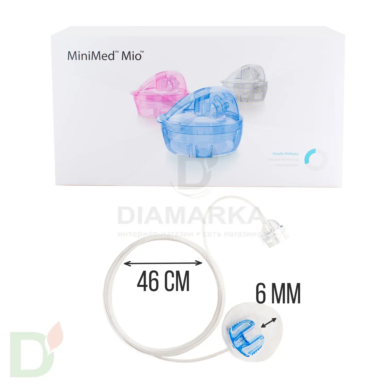 <p style="text-align: center;"> <strong>ДОЛГОЖДАННАЯ НОВИНКА!</strong> </p> <h3 style="text-align: center;">Инфузионный набор Medtronic MiniMed MIO®</h3> <p> Первый дизайн инфузионного набора "всё-в-одном": канюля, катетер и установщик. </p> <ul> <li>Цвет: ГОЛУБОЙ</li> <li>Размер: канюля <strong>6мм</strong>, катетер<strong> 46 см<br> <br> </strong></li> <li>Мягкая тефлоновая канюля ставится под углом 90<sup>о</sup>.</li> <li>Просто использовать: каждый набор упакован в одноразовый установщик, вам остаётся оторвать защитную мембрану и поставить иглу;</li> <li><strong>Удобно брать с собой</strong>: в гостях, на отдыхе, в дороге - отсутствие установщика не застанет вас врасплох! А игла не повредится в сумочке благодаря жёсткому каркасу установщика.</li> </ul> <h3>Инфузионные наборы MIO - прекрасная альтернатива привычным Квик-Сетам!</h3> <p> Благодаря улучшенной форме установщика риск испортить канюлю при установке намного ниже, а яркие заглушки порадуют вас или вашего ребёнка.<span style="color: #383838; font-size: 1.6em; font-weight: bold;"> </span> </p> <h3>Внимание! Рекомендуем заказать не менее 5 устройств для инфузии МИО от Медтроник</h3> <p> На 5 индивидуальных наборов предусмотрена 1 заглушка для купания. </p> <p> При заказе менее 5 штук - заглушка в посылку не вкладывается. </p> <p> При заказе менее 10 штук и более 5 - в комплекте будет 1 заглушка. <br> </p> <p> <b>*Стоимость указана за 1 шт. (на 3 дня)</b><br> </p> <h3>Инфузионные системы, резервуары, сенсоры, инъекционные порты - одноразовое стерильное медицинское изделие, гарантия на них не предусмотрена. Срок годности инфузионных наборов для помпы MiniMed - 3 года с даты производства. Срок службы - 2-3 дня.</h3> <p>   </p>