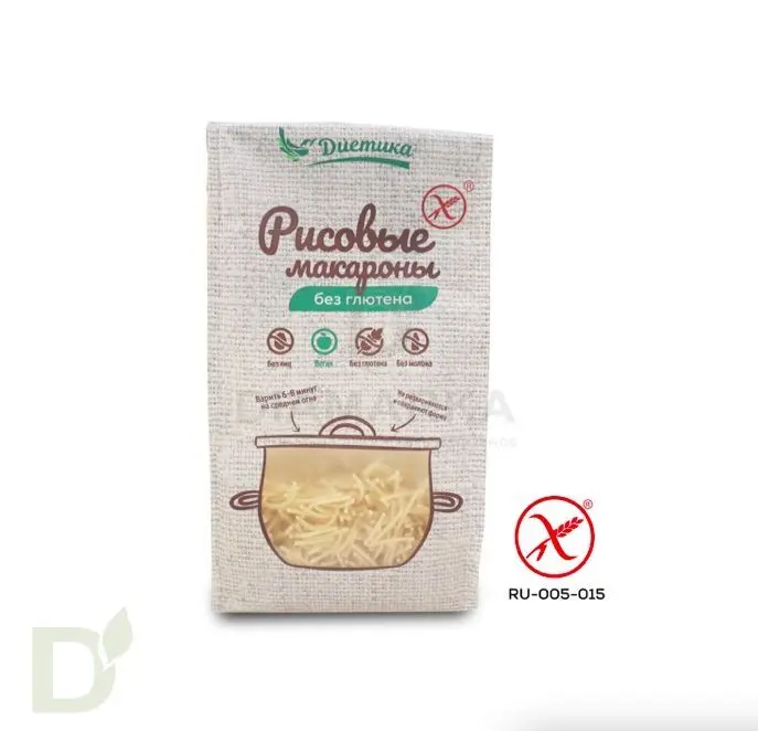 Макароны безглютеновые рисовые Диетика Рожок большой 250г